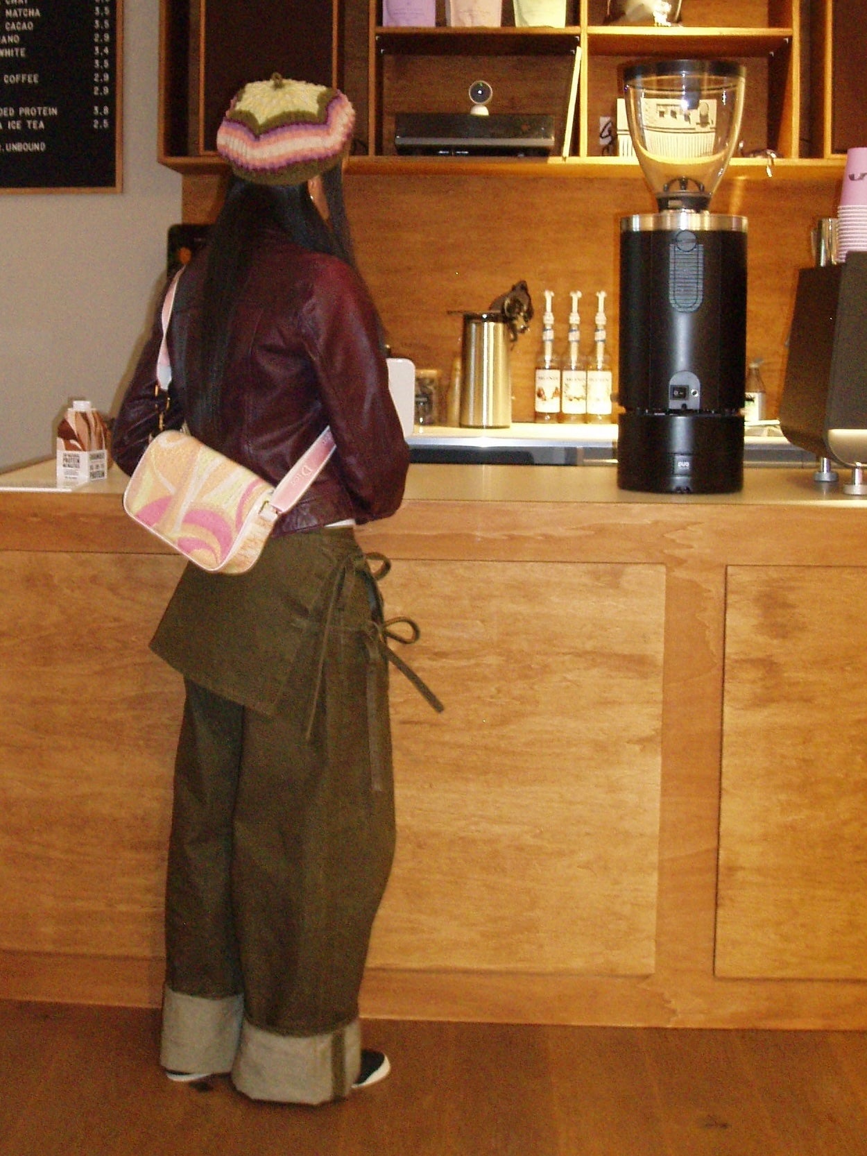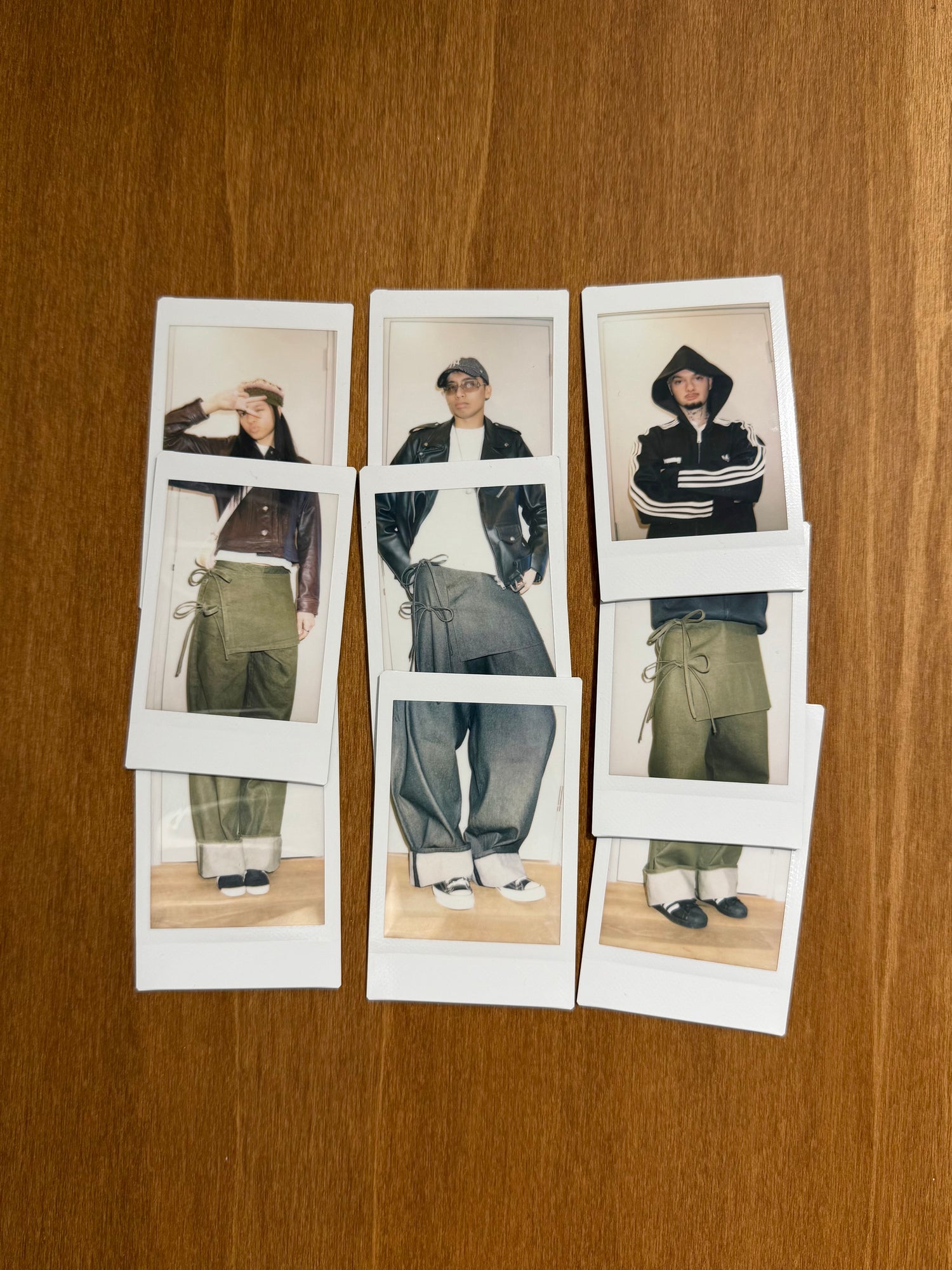 two-tie apron trousers in charcoal and new khaki colour-way available for pre-order on the 30th of october at 6pm london time.